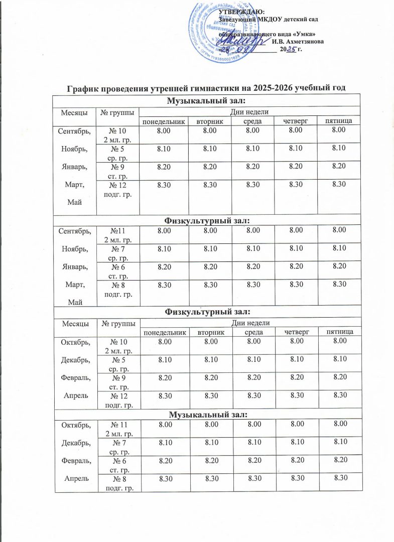- График проведения утренней гимнастики 2020