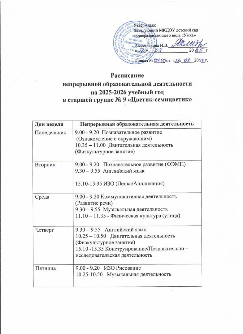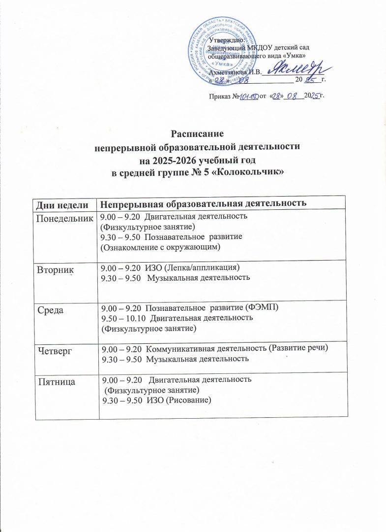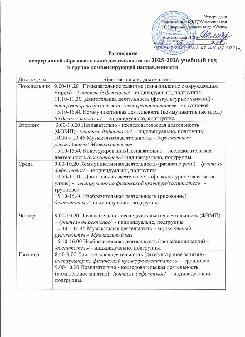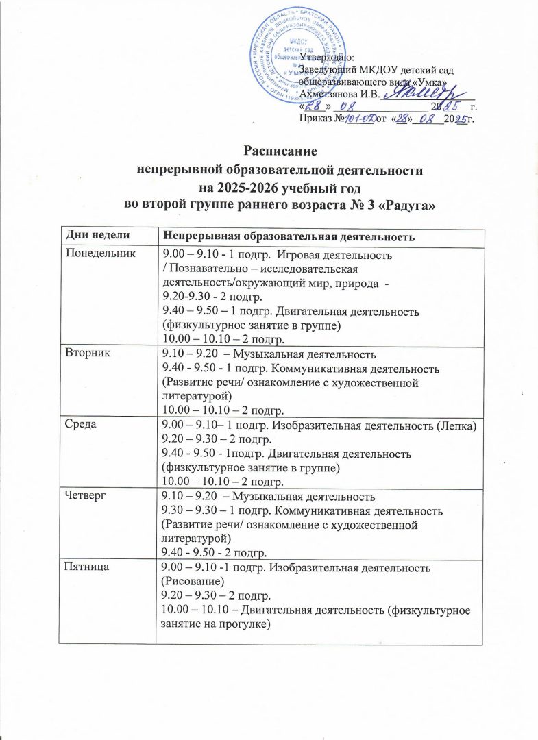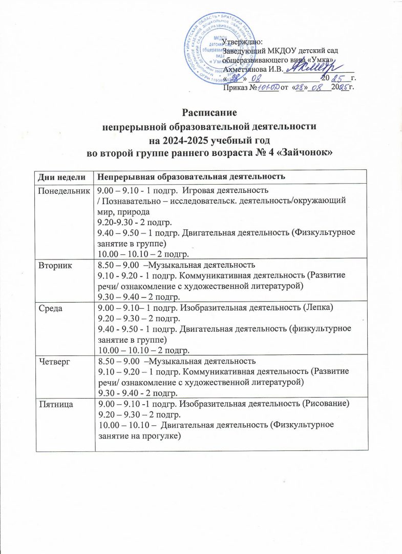 - Расписание образовательной деятельности по музыкальной деятельности и физической культуре